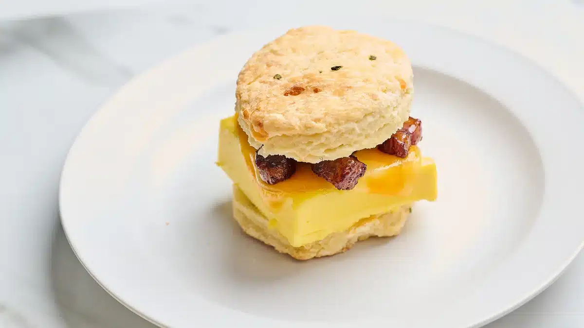 Le biscuit ultra déluxe au bacon, œuf et fromage est un sandwich petit-déjeuner généreux composé de biscuits maison au cheddar et à la ciboulette, d'une patty d'œufs cuite au bain-marie, de lardons glacés au miel piquant et de fromage Colby Jack fondu. Une recette signée Michelle McGlinn pour Tasting Table, qui transforme un classique américain en véritable expérience culinaire.